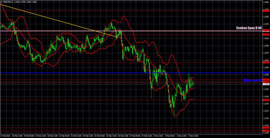 Торговые рекомендации и разбор сделок по GBP/USD на 4 марта. Рынок не может остановиться.
