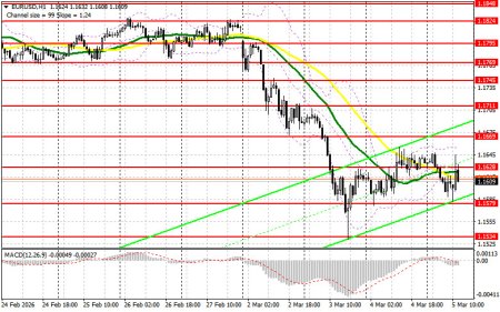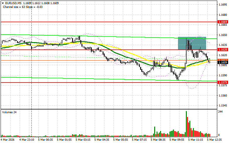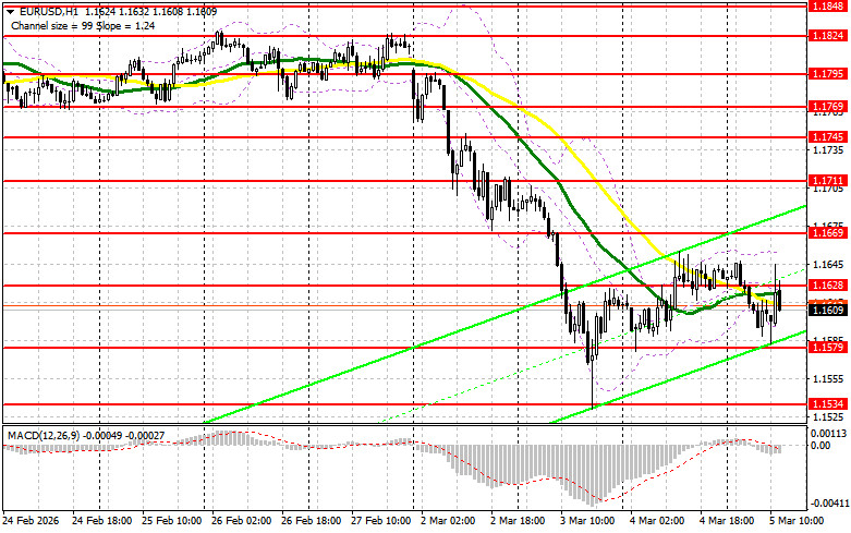 В своем утреннем прогнозе я обращал внимание на уровень 1.1628 и планировал от него принимать решения по входу в рынок. Давайте посмотрим на 5-минутный график и разберемся с тем, что там произошло. Рост и формирование ложного пробоя в районе 1.1628 привели к точке входа на продажу евро. В результате пара снизилась на 20 пунктов. На вторую половину дня техническая картина не пересматривалась.Для открытия длинных позиций по EURUSD требуется:Резкое сокращение объема розничной торговли в еврозоне оказало давление на европейскую валюту в первой половине дня. Но стоит отметить, что пара не вышла за пределы бокового канала, что сохраняет шансы на ее дальнейшую восходящую коррекцию. Во второй половине дня ожидаются цифры по недельному числу первичных обращений за пособием по безработице в США, изменению уровня себестоимости труда и изменению уровня производительности рабочей силы в непроизводственном секторе. Вряд ли эти показатели окажут сильную поддержку доллару, но в случае снижения пары, действовать буду только после теста и формирования ложного пробоя в районе ближайшей поддержки 1.1579, образованной по итогам вчерашнего дня. Это даст точку входа в длинные позиции в расчете на небольшое восстановление евро к уровню 1.1628, закрепиться выше которого сегодня так и не удалось. Прорыв и обратный тест этого диапазона сверху вниз станут подтверждением правильной точки вход с движением к области 1.1669. Самой дальней целью будет уровень 1.1711, где буду фиксировать прибыль. При варианте снижения EUR/USD и отсутствия активности в районе 1.1579, давление на евро вернется. Это приведет к снижению в район нового месячного минимума 1.1534. Лишь после формирования там ложного пробоя собираюсь действовать на покупку евро. Открывать длинные позиции сразу на отскок планирую от 1.1493 с целью восходящей коррекции в 30-35 пунктов внутри дня.Для открытия коротких позиций по EURUSD требуется: Продавцы довольно быстро заявили о себе, что указывает на сохранение давления на пару. В случае слабых данных по США и еще одного роста EUR/USD, основной задачей медведей на вторую половину дня так и останется защита сопротивления 1.1628. Формирование там ложного пробоя по аналогии с тем, что я разбирал выше, будет точкой входа в короткие позиции с целью снижения к уровню 1.1579. Прорыв и закрепление ниже этого диапазона станут подходящим вариантом на продажу уже с движением в район 1.1534, где ожидаю более активного проявления покупателей. Самой дальней целью выступит минимум 1.1493, где буду фиксировать прибыль. В случае движения вверх EUR/USD, а также отсутствия активных действий медведей в районе 1.1628, где проходят средние скользящие, играющие на стороне медведей, все это откроет дорогу к уровню 1.1669. Продавать там буду только после неудачного закрепления. Открывать короткие позиции сразу на отскок я планирую от 1.1711 с целью нисходящей коррекции в 30-35 пунктов.Рекомендую ознакомиться:В COT-отчете (Commitment of Traders) за 24 февраля наблюдалось сокращение длинных позиций и небольшой рост коротких. Но учитывая, что США начали войну с Ираном, в настоящее время этот отчет уже не имеет такой актуальности, какую мог бы иметь. Так что лучше всего сосредоточится на дальнейшем развитии конфликта на Ближнем востоке и покупках американского доллара против рисковых активов, в том числе и евро. В COT-отчете указано, что длинные неко