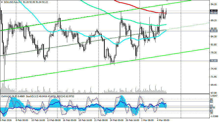 * см. также: Торговые индикаторы InstaForex по SOL После вчерашнего активного роста сегодня биткоин и ведущие альткоины «легли в дрейф», торгуясь с открытия сегодняшнего торгового дня и в начале американской торговой сессии на уровнях цены закрытия среды. В то время как традиционные рынки лихорадит, а доллар укрепляется до многомесячных максимумов, первая криптовалюта не только удержала ключевые уровни, но и поднялась выше 73000.00, возвращая свой статус «цифрового убежища» в периоды турбулентности, отметили мы в нашем вчерашнем обзоре «Крипторынок (BTC): восстановление вопреки геополитическому шторму». Не отстают от биткоина и основные (из ТОП-10) альткоины. Так, пара SOL/USD достигла в среду 4-недельного максимума (с 5 февраля) выше отметки 94.05 и сегодня удерживает свои позиции в зоне цены закрытия среды и отметки 92.30. Ситуация вокруг Solana отражает общее состояние крипторынка, оказавшегося в эпицентре противостояния мощных разнонаправленных сил: с одной стороны — эскалация ближневосточного конфликта и укрепление доллара, с другой — институциональный оптимизм и регуляторный прогресс в США.Давление макроэкономического фона Сектор продолжает испытывать давление от эскалации конфликта США и Ирана, после которой инвесторы, опасаясь глобального экономического замедления из-за роста стоимости энергоносителей, переводят средства в активы-убежища, включая доллар США. Американская валюта получает дополнительную поддержку со стороны риторики ФРС, которая может отказаться от смягчения монетарной политики на фоне сохранения инфляции выше целевых уровней, и от позитивных макро данных, опубликованных на этой неделе. Одним из ключевых факторов стало сообщение компании Automatic Data Processing (ADP) о росте количества новых рабочих мест в частном секторе в феврале на 63 тысячи, значительно превзойдя показатель предыдущего месяца (11 тысяч) и прогноз в 50 тысяч. Дополнительным драйвером роста стал отчет Института управления поставками (ISM), согласно которому индекс PMI деловой активности в сфере услуг (ISM Services Index) повысился до уровня 56,1 против 53,8 месяцем ранее. Это также оказалось лучше консенсус-прогноза экономистов, ожидавших значение индекса примерно на уровне 53,5. Улучшение экономической ситуации и рост активности подтверждают устойчивое восстановление экономики США, способствуя укреплению американской валюты. Однако рынки пока остаются осторожными в ожиданиях дальнейшего изменения монетарной политики Федеральной резервной системы. Несмотря на призыв президента Дональда Трампа снизить ставки, большинство экспертов полагают, что ФРС сохранит текущую политику неизменной вплоть до лета текущего года. Сегодня рынок ожидает новую порцию важных данных — Министерство труда США планирует опубликовать (в 13:30 GMT) статистику по количеству обращений за пособиями по безработице за прошедшую неделю. Ожидания по этому показателю будут играть ключевую роль в дальнейшем движении курса доллара до пятницы, когда в 13:30 (GMT) будут опубликованы месячные данные по динамике американского рынка труда за февраль, а значит и валютных пар с долларом, включая SOL/USD. Сильные данные NFP усилят ожидания сохранения жесткой политики, тогда как слабые - могут укрепить аргументы для снижения ставок, потенциально повышая спрос на рискованные активы. Институциональная поддержка SOL Несм
