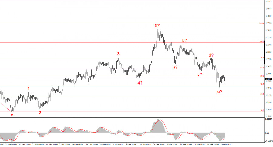 Исходя из проведенного анализа EUR/USD, я делаю вывод, что инструмент продолжает построение повышательного участка тренда. Политика Дональда Трампа и денежно-кредитная политика ФРС остаются весомыми факторами падения американской валюты в долгосрочном плане. Цели текущего участка тренда могут простираться вплоть до 25-й фигуры. На текущий момент я считаю, что инструмент остается в рамках глобальной волны 5, поэтому ожидаю повышения котировок в первой половине 2026 года. Коррекционная структура a-b-c-d-e может завершиться в любой момент, так как уже приняла убедительный вид. Я считаю, что сейчас целесообразно заниматься поиском областей и уровней для новых покупок с целями, расположенными около отметок 1,2195 и 1,2367, что приравнивается к 161,8% и 200,0% по Фибоначчи.Волновая картина по GBP/USD: