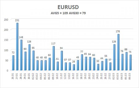 Валютная пара EUR/USD в течение пятницы показала удивительные движения. Напомним, что мы нередко в последнее время называли рост доллара алогичным, но все же в последние недели его можно было объяснить войной в Иране. Рынок вновь начал использовать доллар США в качестве защитного актива, хотя весь 2025 год активно велись разговоры о потере статуса «тихой гавани». Но, как видим, началась новая война в мире, и рынок не нашел никакой альтернативы доллару. Однако удивительно даже не это. Удивительно то, что рынок опять практически все факторы интерпретирует в пользу доллара. К примеру, неделю назад мы увидели абсолютно провальные темпы роста ВВП в четвертом квартале. Экономика США выросла всего лишь на 1,4%, а в годовом выражении она растет даже более низкими темпами, чем при Джо Байдене. Несмотря на постоянные заявления Трампа об «экономическом буме» и «золотом веке» для Америки. В прошлую пятницу в Штатах были опубликованы отчеты по безработице и рынку труда, которые объективно должны были спровоцировать обвал американской валюты. Многие аналитики назвали значение NonFarm Payrolls -92 000 «неожиданным», хотя, на наш взгляд, неожиданным было январское значение +130 000. Напомним, что за весь 2025 год американская экономика создала около 180 тысяч рабочих мест. Поэтому именно январское значение выглядело чрезмерно высоким. К слову, в кои-то веки Бюро статистики США не пересмотрело на несколько десятков тысяч значение предыдущего месяца. Однако сокращение рынка труда на 92 тысячи рабочих мест, когда нормальным значением показателя считается +150-200 тысяч – это провал. Одновременно с этим вырос уровень безработицы, который в последние месяцы активно снижался на радость всем поклонникам американской валюты. Таким образом, рынок труда не восстанавливается, а январский прирост был попросту случайностью. Единственной причиной такой резистентности американского доллара можно считать войну в Иране. Но получается, что рынок в очередной раз готов отрабатывать позитивные для доллара факторы и не готов – негативные. Если реакция рынка на фундамент и макроэкономику настолько однобокая, то делать выводы на основании этих видов анализа попросту не имеет смысла. На этой неделе макроэкономический фон может вновь находится на втором плане. В Евросоюзе самым важным событием на неделе будет публикация промышленного производства в Германии. Рынок фактически проигнорировал важнейшие отчеты NonFarm Payrolls и уровень безработицы в пятницу, поэтому на европейские отчеты на следующей неделе вряд ли обратит хоть какое-то внимание. Таким образом, на первом месте вновь будет стоять геополитика, а понять, чего ожидать от пары EUR/USD, можно будет только по техническому анализу. Если Штаты начнут проведение наземной операции или же удары по Ирану станут более интенсивными(как и ответные удары Ирана), или же другие государства начнут втягиваться в открытый конфликт, эти события могут вновь привести к росту доллара. Если новой эскалации не случится, может начаться хотя бы восходящая коррекция. Средняя волатильность валютной пары EUR/USD за последние 5 торговых дней по состоянию на 9 марта составляет 109 пунктов и характеризуется, как «высокая». Мы ожидаем движение пары между уровнями 1,1508 и 1,1726 в понедельник. Старший канал линейной регрессии направлен вверх, что указывает на сохранение вос