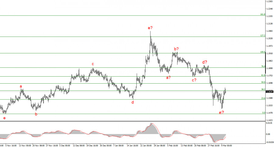 Курс инструмента EUR/USD во вторник повысился на буквально на 10 базовых пунктов и в целом продолжает сдержанное восстановление. Вчера Дональд Трамп сообщил, что война в Иране близится к своему завершению, так как большая часть целей в стране уничтожена, а верхушка власти – ликвидирована. По словам американского президента, остается еще буквально несколько объектов, уничтожение которых может занять не более одного дня. В то же время, Трамп сообщил, что новая власть страны не должна блокировать Ормузский пролив, иначе ее ждет та же участь, что и власть предыдущую. Исходя из этого, можно сделать вывод, что своих целей Дональд Трамп достиг, но эти цели не изменят политический и ядерный курс Ирана. Уничтоженные объекты через несколько лет будут восстановлены, а новая власть Ирана будет придерживаться тех же целей и ценностей, что и предшествующая верхушка. Судите сами, насколько справедливы заявления Трампа о достижении поставленных задач. Однако миру нужен мир. Мир на Ближнем Востоке, мир в Восточной Европе. Пока мира достичь не удается, а уже завтра в США выйдет отчет по инфляции, который должен хоть немного отвлечь участников рынков от цен на нефть и газ. Индекс потребительских цен выйдет за февраль, поэтому с более высокой вероятностью рынок его проигнорирует. С тех пор, как началась война в Иране, а цены не энергоносители поднялись в полтора-два раза, всех интересует, насколько вырастет инфляция по всему мира из-за этого конъюнктурного изменения. Февральский отчет не включает в себя события на Ближнем Востоке, поэтому вряд ли представляет какой-либо интерес при любом значении. Европейская валюта может продолжать восстановление, которое может стать началом нового повышательного участка тренда.Общие выводы
