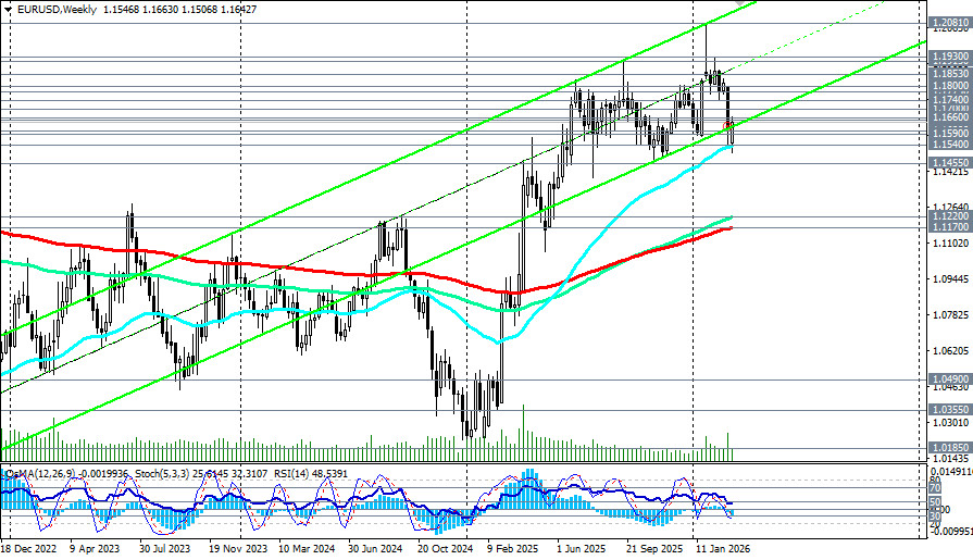 1.1500-1.1455 (ЕМА144 на месячном графике и критическая зона). Прорыв ниже открывает дорогу к 1.1400 и 1.1340