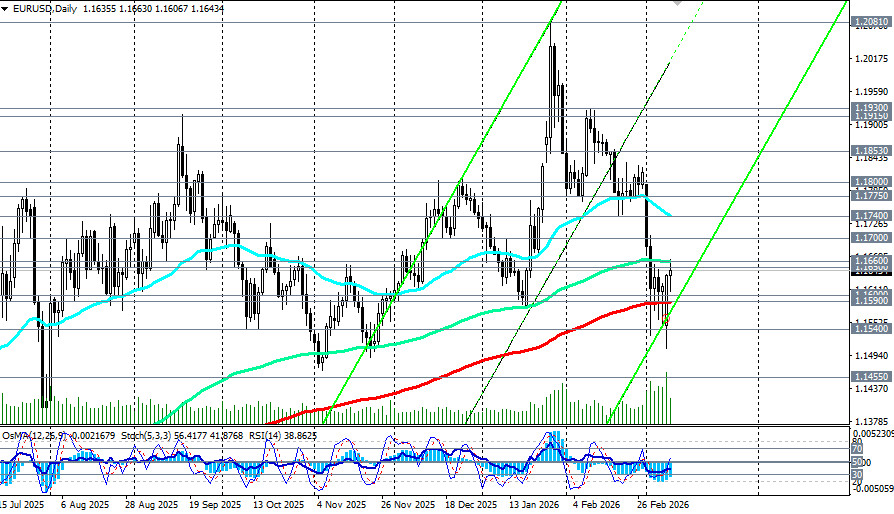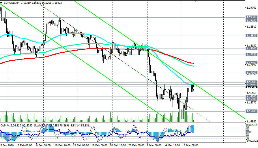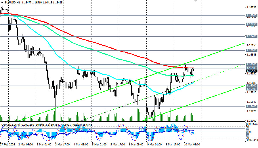Пара EUR/USD сталкивается с серьезными проблемами, обусловленными как экономическими, так и геополитическими факторами. Краткосрочная же динамика будет определяться исходом противостояния между геополитическим давлением и пересмотром монетарных ожиданий, предположили мы в нашем сегодняшнем фундаментальном анализе и обзоре «EUR/USD: между геополитикой и монетарными ожиданиями». Во вторник, 10 марта, пара торгуется в районе 1.1620-1.1660, демонстрируя неустойчивое восстановление после тестирования трехмесячного минимума 1.1507 в понедельник. Выше ключевых зон поддержки 1.1590 (ЕМА200 на дневном графике)-1.1600, 1.1200-1.1170 (ЕМА200 на недельном графике) EUR/USD двигается в зоне устойчивого среднесрочного и долгосрочного бычьего рынка и остается в зоне глобального бычьего рынка выше ключевой зоны поддержки 1.1590 (ЕМА200 на дневном и месячном графиках)-1.1540 (ЕМА50 на недельном графике). Ключевая поддержка: