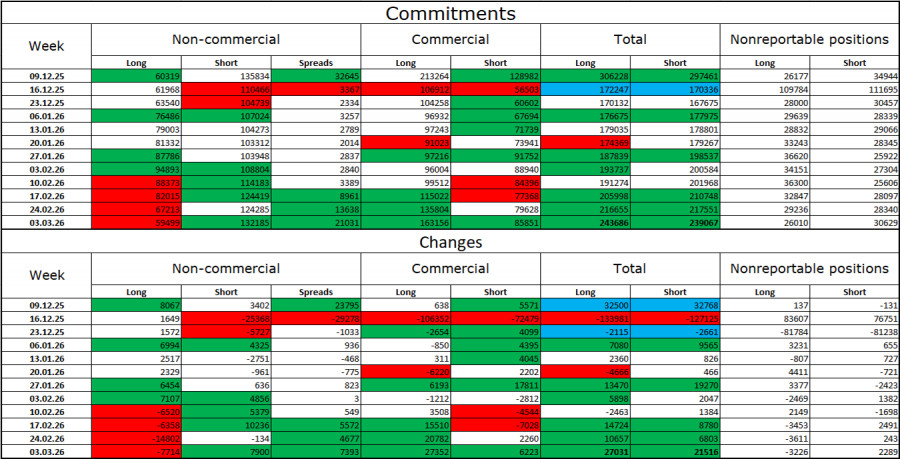 Настроение категории трейдеров «Non-commercial» за последнюю отчетную неделю стало более «медвежьим», что в текущих обстоятельствах уже не выглядит случайностью. Количество Long-контрактов на руках спекулянтов сократилось на 7714 единиц, а количество Short – выросло на 7900 единиц. Разрыв между количеством Long и Short-контрактов сейчас фактически следующий: 59 тысяч против 132 тысяч. В последние месяцы чаще доминируют медведи, но ситуация с контрактами по евровалюте прямо противоположная. В «медвежий» тренд по британцу я по-прежнему не верю, но теперь все будет зависеть не от экономических показателей, торговой политики Трампа, а от длительности и масштаба войны на Ближнем Востоке. Британец в последний год выглядел более безопасной валютой по сравнению с долларом. Более стабильной и с понятным экономическим будущим. Однако в последние месяцы сначала началась коррекция при сохранении «бычьего» тренда, а затем конфликт на Ближнем Востоке начал разгораться практически каждый день. Переговоры о соглашении между США и Ираном провалились, поэтому теперь доллар растет из-за геополитики. Календарь новостей для США и Великобритании: США – Индекс потребительских цен (12-30 UTC). 11 марта календарь экономических событий содержит в себе одну, достаточно важную запись. Влияние информационного фона на настроение рынка в среду может присутствовать. Прогноз по GBP/USD и советы трейдерам: Продажи пары возможны сегодня при отбое на часовом графике от зоны 1,3437–1,3465 с целью 1,3341–1,3352. Покупки я советовал в случае закрытия пары на часовом графике над зоной 1,3341–1,3352 с целью 1,3437–1,3465. Цель достигнута. Новые покупки – при закрытии над зоной 1,3437–1,3465 с целью 1,3526–1,3539. Сетки уровней Фибоначчи построены по 1,3341–1,3866 на часовом графике и по 1,3431–1,2104 на 4-часовом.Материал предоставлен компанией InstaForex - www.instaforex.com