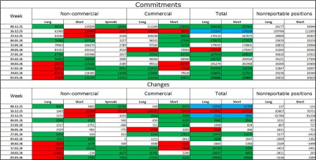 На 4-часовом графике пара выполнила возврат к верхней границе нисходящего трендового коридора. Отбой котировок от этой линии и зоны 1,3369–1,3435 сработает в пользу валюту США и возобновления падения в направлении зоны поддержки 1,3118–1,3140. Закрытие котировок над нисходящим коридором позволит рассчитывать на завершение «медвежьего» тренда и рост в направлении уровня Фибо 127,2% – 1,3795. Назревающих дивергенций сегодня не наблюдается ни у одного индикатора. Отчет Commitments of Traders (COT):