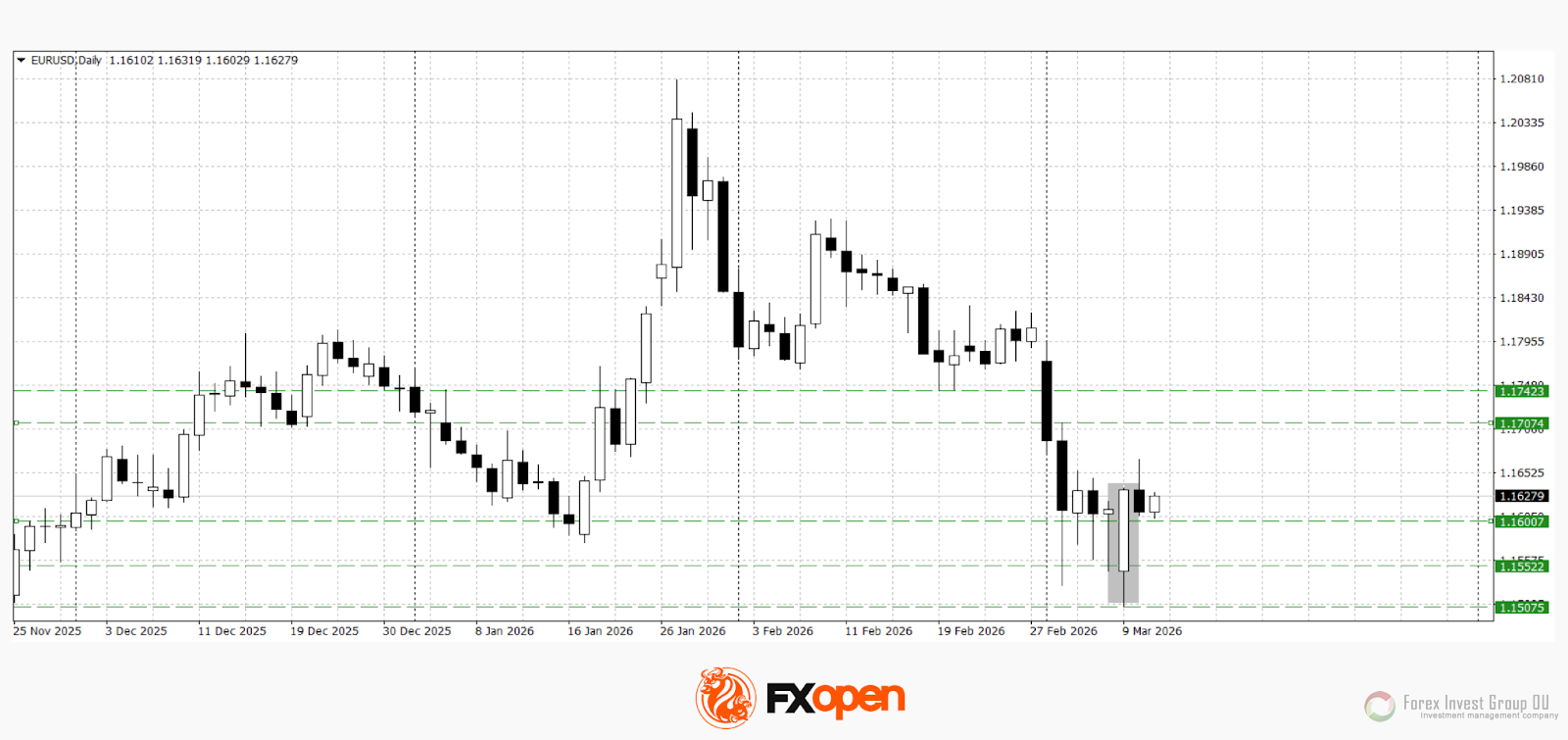FxSignal 11-03-2026, 13:00 56 Аналитика, прогнозы валютного рынкаЕвропейская валюта укрепляется после снижения в начале недели. В первые торговые дни евро находился под давлением, однако затем последовало резкое восстановление. Поддержку европейской валюте оказало снижение геополитической напряжённости на Ближнем Востоке, где появились признаки замедления эскалации конфликта вокруг Ирана. Ослабление геополитических рисков снизило спрос на защитные активы и позволило европейским валютам частично восстановить позиции. При этом участники рынка сохраняют осторожность, поскольку в ближайшее время будут опубликованы важные инфляционные показатели как в еврозоне, так и в США.