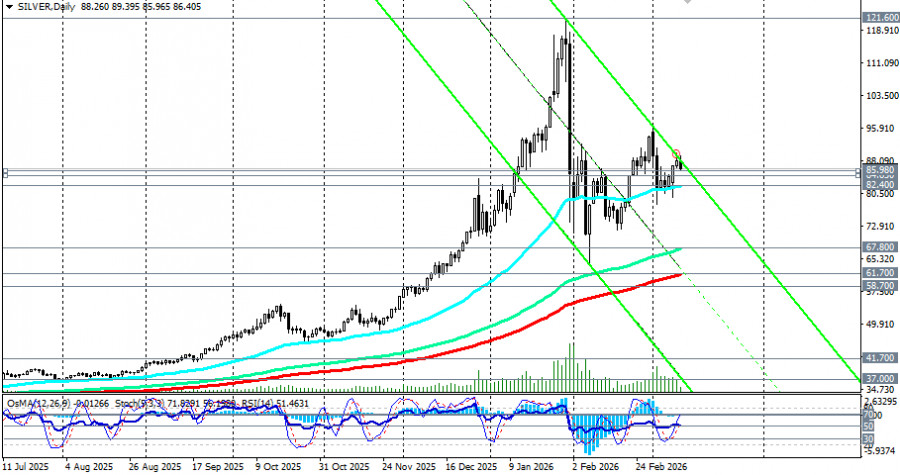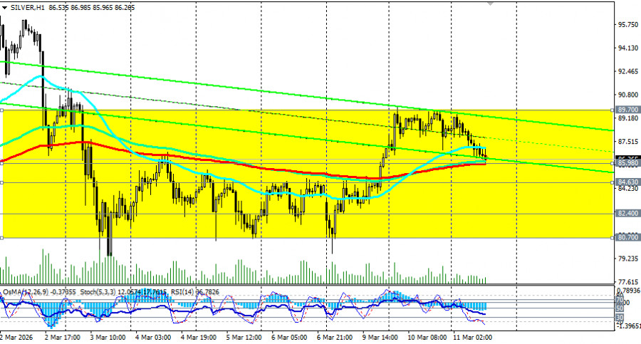 Ключевая зона 86.00-89.70 (верхняя граница диапазона 80.70-89.70) останется решающей. Удержание выше откроет дорогу к тестированию 90.00 и далее к 94.00, тогда как пробой ниже 86.00 направит цену к 84.00, 82.40 (ЕМА50 на дневном графике) и к 81.00-80.70. Заключение Серебро переживает исторический момент, где краткосрочная волатильность, вызванная ближневосточным кризисом, накладывается на структурный дефицит физического металла и растущий промышленный спрос. Ключевая зона 86.00-89.70 станет решающей в ближайшие дни для быков - прорыв выше открывает дорогу к повторному тесту исторических максимумов 118.00-121.00, тогда как пробой ниже 82.40-80.70 может углубить коррекцию к 70.00-67.80 (ЕМА144 на дневном графике). Инвесторам следует внимательно следить за развитием дипломатических контактов, данными по инфляции в США и, что наиболее важно, за динамикой физических запасов на COMEX. Успех будет на стороне тех, кто сможет отделить краткосрочный шум от долгосрочных трендов - структурные факторы (дефицит, промышленный спрос, истощение запасов) продолжают указывать на потенциал роста к 120.00 и выше во втором полугодии, как прогнозируют в некоторых крупнейших банках и независимые эксперты рынка драгметаллов.Материал предоставлен компанией InstaForex - www.instaforex.com