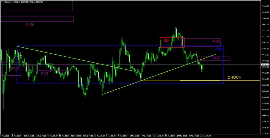 Торговые рекомендации по Биткоину(Bitcoin) на 23 марта по системе ICT.