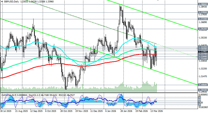 GBP/USD оказалась в сложной ловушке. Ястребиный разворот Банка Англии и закладываемые рынком 85 б.п. повышения ставок создают поддержку для фунта, но стагфляционные риски - сочетание высокой инфляции и замедления роста - ограничивают потенциал укрепления, предположили мы в нашем сегодняшнем фундаментальном анализе и обзоре «GBP/USD: стагфляционная ловушка и ястребиный разворот BoE». Пара GBP/USD остается в рамках широкого диапазона 1.3200-1.3500, сформировавшегося с начала марта. Технические индикаторы подают смешанные сигналы. OsMA рисует гистограммы, которые пересекли снизу вверх нейтральный нулевой уровень, в зоне бычьего рынка (длинных позиций), а 14-дневный индекс относительной силы (RSI) находится в нейтральной зоне (около 49-50), что оставляет пространство для движения в обе стороны. Наиболее вероятный сценарий в ближайшие недели - консолидация в диапазоне 1.3200-1.3500. Ястребиный разворот BoE поддерживает фунт, но стагфляционные риски и сила доллара ограничивают потенциал роста. Ключевая зона 1.3300 (локальный уровень поддержки) -1.3440 (ЕМА50 на дневном графике) останется в фокусе. Медвежий сценарий реализуется при сохранении высоких цен на энергоносители и признаках замедления британской экономики. Предстоящие индексы PMI за март (публикация во вторник) станут первым индикатором влияния кризиса на деловую активность. Слабые цифры могут усилить давление на фунт. Первый сигнал на реализацию - пробой 1.3270 (ЕМА200 на дневном графике) -1.3340 (ЕМА200 на 1-часовом графике), а подтверждающий – подтвержденный пробой важного среднесрочного уровня поддержки 1.3320 (ЕМА50 на недельном графике). Цели (в периоде от нескольких недель до 2 месяцев) расположены в зоне ключевых долгосрочных уровней поддержки 1.3060 (ЕМА144 на недельном графике, 1.3010 (ЕМА200 на недельном графике, ЕМА50 на месячном графике). Пробой «круглой» отметки 1.3000 и дальнейшее снижение подтвердят возврат цены в зону глобального медвежьего рынка. Бычий сценарий возможен при признаках реальной деэскалации конфликта и сохранении ястребиных ожиданий по ставкам BoE. Однако экономисты предупреждают, что даже в этом случае стагфляционные риски будут ограничивать потенциал роста. Возможен при закреплении выше 1.3440 (ЕМА50 на дневном графике). Ближайшие цели роста расположены в зоне важного стратегического уровня сопротивления 1.3620 (ЕМА144 на месячном графике). Его пробой может спровоцировать дальнейший рост в сторону ключевого стратегического уровня сопротивления 1.4110 (ЕМА200 на месячном графике), ограничивающего глобальный медвежий рынок цены от бычьего, с промежуточными целями на локальных уровнях сопротивления 1.3720, 1.3785, 1.3800, 1.3866, 1.3900. Ключевая зона 1.3300-1.3440 и более широкая 1.3200-1.3500, таким образом, станут ареной решающей битвы в ближайшие дни. Уровни поддержки: 1.3370, 1.3344, 1.3320, 1.3300, 1.3200, 1.3100, 1.3060, 1.3010, 1.3000 Уровни сопротивления: 1.3400, 1.3410, 1.3426, 1.3440, 1.3500, 1.3600, 1.3620, 1.3700, 1.3720, 1.3785, 1.3800, 1.3860, 1.4000, 1.4100, 1.4110 Торговые сценарии
