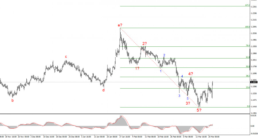 Анализ EUR/USD. 23 марта. Понедельник имени ТрампаВолновая картина по EUR/USD: