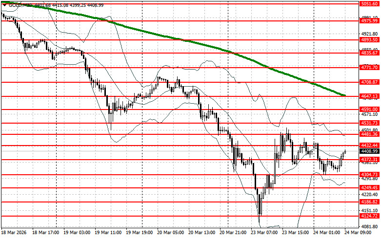 Цена на золото продемонстрировало десятое подряд дневное снижение на фоне усиливающихся опасений по поводу войны на Ближнем Востоке и ее влияния на инфляцию и мировой экономический рост.Вчера цена на золото упала на 2,3% в ходе очередной волатильной торговой сессии, в ходе которой металл опускался до отметки $4100, после чего восстановился в район $4500. Риск резкого повышения Федеральной резервной системой процентных ставок стал основным катализатором этого снижения. Отсрочка президентом Дональдом Трампом американских атак на иранскую энергосистему на пять дней дала кратковременную передышку от резкого падения цен на золото, однако спустя некоторое время ряд иранских чиновников исключили возможность переговоров.Хотя отсрочка военных действий в Иране временно снизила напряженность, исключение иранскими чиновниками возможности переговоров снова подлило масла в огонь. Это подчеркивает хрупкость текущей ситуации и потенциал для дальнейшей эскалации, что, в свою очередь, может оказать давление на золото. Важно отметить, что текущие движения на рынке золота могут быть предвестниками более масштабных изменений. Сочетание инфляционных ожиданий, геополитической нестабильности и политики ФРС создает сложную картину, в которой золото может как продемонстрировать значительный рост, так и испытать коррекцию. Многие эксперты сходятся во мнении, что высокие цены на энергоносители, вызванные конфликтом, повысили инфляционные риски и побудили инвесторов отказаться от своих относительно ликвидных и прибыльных позиций в золоте в пользу других активов. Несмотря на объявленную Трампом пятидневную паузу, исход любых переговоров и дальнейший проход судов через Ормузский пролив остаются неопределенными. Даже на восстановление уже нанесенного ущерба энергетической инфраструктуре потребуется время. Это означает, что угроза инфляции продолжает оказывать давление на золото, как и ожидание повышения процентных ставок Федеральной резервной системой США и другими центральными банками — фактор, препятствующий росту цен на драгоценные металлы, не приносящие дохода.Что касается текущей технической картины золота, то покупателям нужно забирать ближайшее сопротивление $4432. Это позволит нацелиться на $4481 выше которого пробиться будет довольно проблематично. Самой дальней целью выступит области $4531. В случае падения золота медведи попытаются забрать контроль над $4372. Если это удастся сделать, пробой диапазона нанесет серьезный удар по позициям быков и столкнет Gold к минимуму $4304 с перспективой выхода на $4249.Материал предоставлен компанией InstaForex - www.instaforex.com