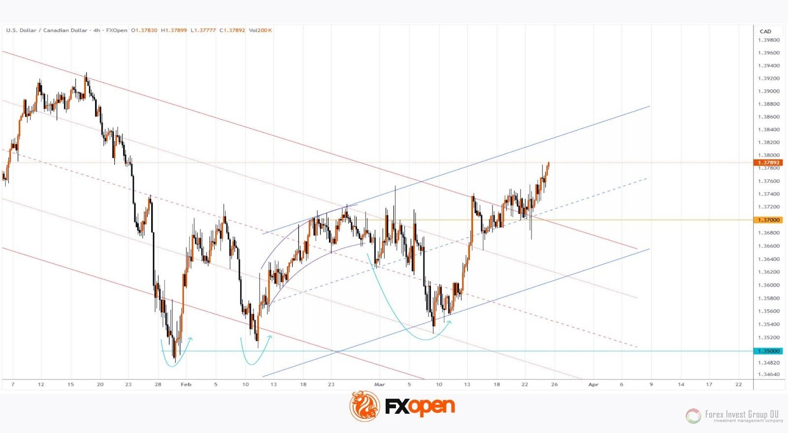 FxSignal 25-03-2026, 14:00 39 Аналитика, прогнозы валютного рынкаСегодня валютная пара USD/CAD поднялась выше 1.3787, впервые с конца января.