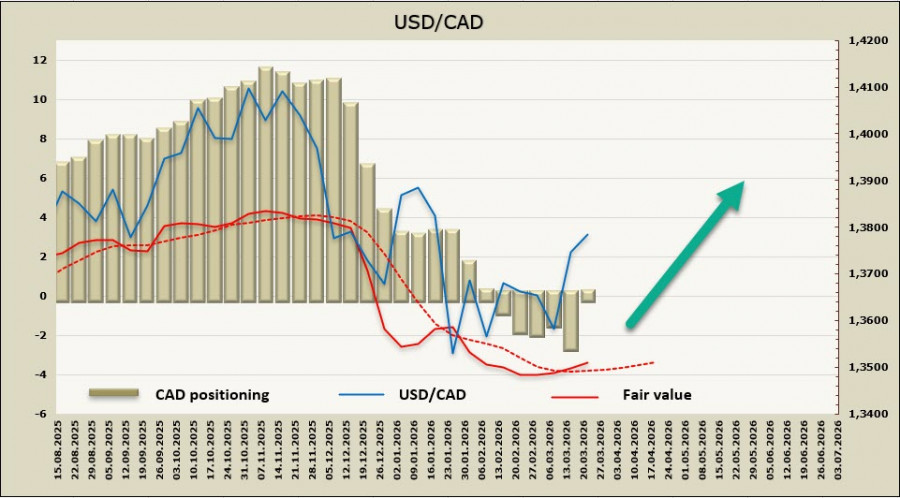 Вместе с тем никаких признаков деэскалации нет. Советник Верховного лидера Исламской революции Резаи заявил, что война не завершится до тех пор, пока не будут сняты все санкции, выплачены компенсации за причинённый ущерб и предоставлены международно-правовые гарантии того, что агрессия против Ирана не повторится. По его словам, до выполнения этих условий прекращения огня не будет. Рынки предпочитают не замечать таких заявлений, ориентируясь на очередную дезинформацию от Трампа. Полагаем, что снижение напряженности временное, и риски в ближайшем будущем вновь усилятся. Цены на удобрения выросли примерно на 40% выше с начала года, на дизельное топливо – на 50%, приближается резкий рост цен на продукты, что, в свою очередь, усилит и без того неизбежный инфляционный шок. Для Канады многое будет зависеть от политики BoC, который пока настроен на дальнейшее снижение ставки. Пока Банк Канады не публично не скорректирует свою позицию, канадский доллар будет испытывать все возрастающее давление на фоне того, что рынок ориентируется на все более ястребиную позицию ФРС. Чистая длинная позиция по CAD за отчетную неделю полностью ликвидирована, изменение -2,6 млрд, это вторая по объему продажа против доллара после евро. Расчетная цена не удержалась ниже долгосрочной средней и делает попытку уйти вверх.