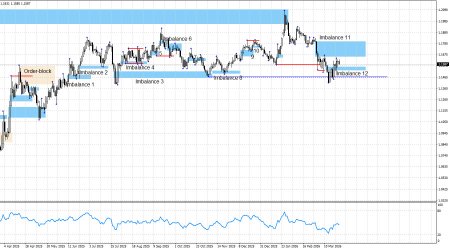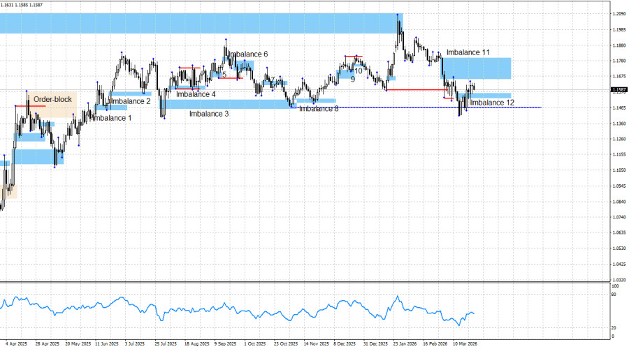 Весь рост американской валюты в последние 4-5 недель был обеспечен геополитикой. Именно поэтому я неоднократно говорил, что не верю в завершение «бычьего» тренда, несмотря на пробой важных, трендообразующих лоу. В данное время имбаланс 12 можно считать инвалидированным, но в тоо же время реакции на имбаланс 11 получено не было. Таким образом, и быки могут продолжить свои атаки, и медведи могут возобновить свое наступление. Движение последних 2 месяцев вполне может стать «медвежьим» трендом, если геополитика и дальше будет всячески поддерживать доллар. Но на текущий момент я по-прежнему не уверен в завершении «бычьего» тренда. Новых сигналов, ни «бычьих», ни «медвежьих» в любом случае нет. В продолжение падения я смогу поверить лишь в том случае, если геополитика и дальше будет оказывать серьезную поддержку медведям. А, как я уже говорил, для этого требуется, чтобы ситуация на Ближнем Востоке не просто оставалась сложной, а чтобы она становилась еще хуже. Куда еще хуже, чем сейчас? Нефть должна продолжать расти в цене, в конфликт на Ближнем Востоке должны вступать новые государства, экономики развитых стран мира должны в буквальном смысле слова страдать в течение долгого времени. А сам конфликт должен растянуться на долгие месяцы. Ранее я говорил, что предпосылок для такого сценария я не вижу, но позитивных вестей с Ближнего Востока поступает крайне мало. Ситуация может вспыхнуть с новыми силами в любой момент. Новых паттернов для открытия позиций в данное время нет. В ближайшее время может быть отработан имбаланс 11, и в случае реакции цены на этот паттерн, процесс падения может быть возобновлен с целями ниже 1,1400. Однако для этого требуется поддержка геополитики. Если рынок переключит внимание на стандартный экономический фон, то на прошлой неделе ЕЦБ и Банк Англии создали плацдарм для роста евро и фунта в виде готовности к ужесточению ДКП. Но пока трейдеров больше интересует Ормуз и Иран. Графическая картина пока еще продолжает сигнализировать о «бычьей» доминации. «Бычий» тренд остается в силе, однако в данное время трейдеры-быки остаются в незавидном положении из-за резко изменившегося информационного потока. Чтобы открывать новые сделки на покупку, нужны новые «бычьи» паттерны или хотя бы съем ликвидности с двух последних «медвежьих» свингов. Съем ликвидности мы увидели, но он не является паттерном, по нему нельзя открывать торговые сделки. Информационный фон в среду был крайне скудным. В интернет поступила информация о мирном плане Дональда Трампа, который был отвергнут властями Ирана, как бессмысленный. Вот и все новости. Если деэскалация конфликта и началась, то она движется очень медленно. Причин у быков атаковать остается огромное количество, и даже с началом войны на Ближнем Востоке их меньше не стало. Структурно и глобально политика Трампа, которая привела к серьезному падению доллара в прошлом году, не поменялась. В ближайшее время американская валюта может демонстрировать рост на фоне бегства инвесторов от риска, но этот фактор не сможет оказывать ей поддержку постоянно. А других факторов поддержки у американской валюты нет. В «медвежий» тренд я по-прежнему не верю. Доллар получил временную поддержку рынка, но не факт, что такая ситуация будет сохраняться долгое время. Однако «бычий» тренд сломлен, и это следует 