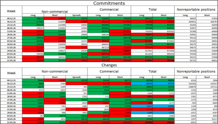 В течение последней отчетной недели профессиональные игроки закрыли 52800 Long-контрактов и открыли 31212 контракта Short. Настроение группы «Non-commercial» остается «бычьим» благодаря Дональду Трампу и его политике, но в последние недели мы наблюдаем активное сокращение Long-позиций и наращивание Short. Общее количество контрактов Long, сосредоточенных на руках спекулянтов, сейчас составляет 213 тысяч, а контрактов Short – 191 тысяч. Преимущество быков всего за несколько недель практически полностью испарилось В целом, на долгосрочной дистанции крупные игроки продолжают смотреть с большим интересом в сторону евровалюты. Безусловно, события различного характера в мире, недостатка в которых в последние годы не наблюдается, оказывают различное влияние на настроение инвесторов. В частности, сейчас все внимание рынка обращено на Ближний Восток, где война продолжает набирать обороты и расширять свою географию. Таким образом, в ближайшее время курс евро и доллара будет зависеть не от ДКП ФРС, ЕЦБ или экономических данных, а от войны в Иране. И доллар пока извлекает максимум выгоды из этого события. Календарь новостей для США и Евросоюза: Германия – Индекс потребительской уверенности (07-00 UTC). США – Изменение числа первичных обращений за пособиями по безработице (12-30 UTC). 26 марта календарь экономических событий содержит в себе лишь две записи, ни одна из которых особого интереса не вызывает. Влияние информационного фона на настроение рынка в четверг может быть слабым. Прогноз по EUR/USD и советы трейдерам: Продажи пары были возможны при закреплении под уровнем 1,1577 с целью 1,1440. Сделки на покупку станут возможны при закрытии пары над уровнем 1,1577 с целью 1,1696. Сетки уровней Фибоначчи построены по 1,1577–1,2082 на часовом графике и по 1,1474–1,2082 на 4-часовом.Материал предоставлен компанией InstaForex - www.instaforex.com