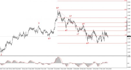 Волновая картина инструмента GBP/USD приобрела очень сложный, нечитаемый вид. Теперь мы видим на графиках семиволновую понижательную структуру, которая, безусловно, таковой не является. Вероятнее всего, внутри одной из волн присутствует удлинение или усложнение. Однако понятнее от этого волновая разметка не становится. Если волновая картина один раз усложнилась до нечитаемого вида, то может усложниться и еще несколько раз. Поэтому я считаю, что сейчас нужно опираться на волновую разметку инструмента EUR/USD, которая выглядит гораздо более понятно. Следовательно, от британца я также жду повышения с целями, расположенными около отметок 1,3541 и 1,3620. Также не следует забывать о факторе геополитики, который в любой момент может отправить оба инструмента в новое падение.Основные принципы моего анализа: