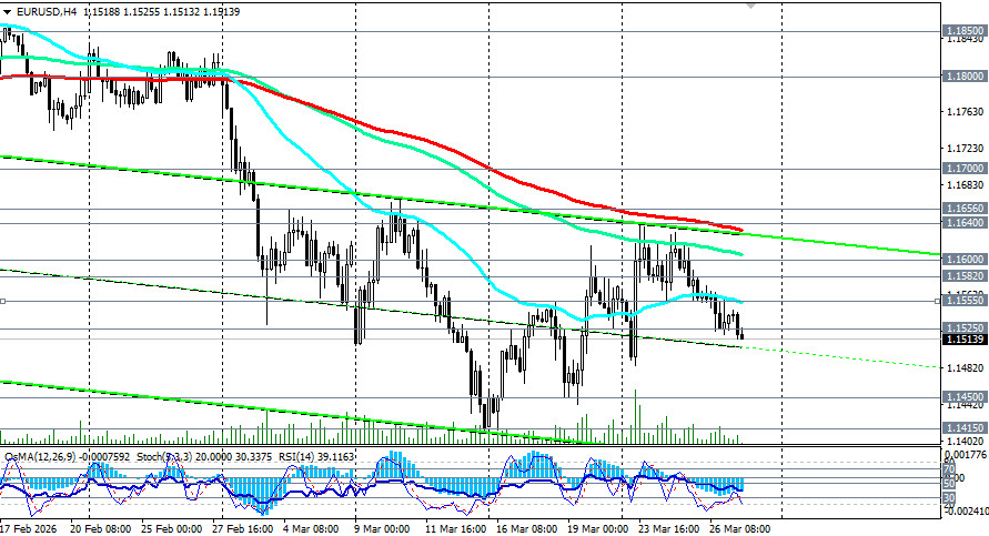 Медвежий сценарий: Sell Stop 1.1490, 1.1480. Stop-Loss 1.1535, 1.1550, 1.1560. Цели