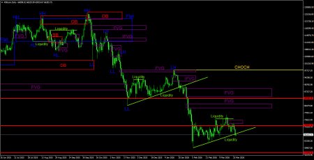 Биткоин продолжает некое подобие восходящего движения, которое является коррекцией, уже полтора месяца. На дневном ТФ это отлично видно. Снизу остается пул ликвидности, за которым цена сходит с вероятностью 90%. На 4-часовом ТФ отлично видно, насколько медленно растет биткоин, если вообще растет. Таким образом, наша точка зрения остается без изменений – нисходящий тренд не завершен, на рынке – пауза. Тем временем, аналитики JPMorgan сделали вывод, что биткоин за время войны в Иране стал... «тихой гаванью». И нет, это не шутка. Биткоин падает в последние 10 дней, когда стало понятно, что ФРС и другие центральные банки отказались от дальнейшего смягчения монетарной политики, а война в Иране имеет минимальные шансы на деэскалацию в ближайшее время. В целом, биткоин не может показать ощутимую коррекцию уже полтора месяца. И на фоне этого аналитики JPMorgan делают вывод, что биткоин теперь «тихая гавань» и соответственно привлекает инвесторов в эти смутные времена. Может быть, и привлекает, вот только цена на биткоин не растет, что говорит о большем количестве продаж на рынке. Однако аналитики JPMorgan также отмечают, что в последние недели золото и серебро подешевели, а биткоин... Об этом ничего не говорится, потому что на текущий момент с начала войны в Иране цена на биткоин не изменилась. То есть за целый месяц «тихая гавань» не подорожала ни на доллар. Тем не менее, в JPMorgan отмечают притоки капитала в первую криптовалюту, а трейдеры могут еще раз убедиться, насколько просто манипулировать информацией. Приток капитала может быть и увеличивается, вот только отток тоже может расти. Таким образом, как вывод, можем сказать, что за последний месяц ничего позитивного для «цифрового золота» в мире не произошло. Ужесточение настроя центральных банков и война в Иране – это, скорее, факторы, которые будут оказывать дополнительное давление на биткоин.