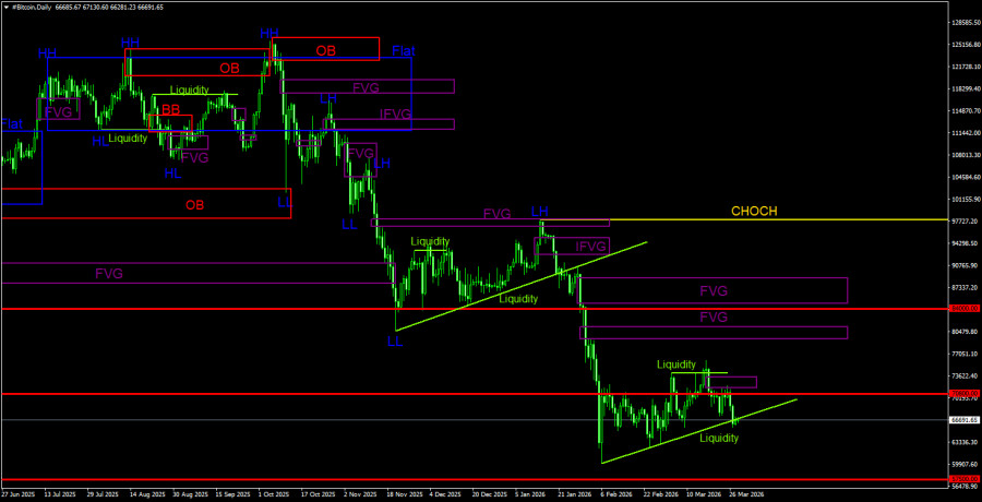 Торговые рекомендации по Биткоину(Bitcoin) на 28 марта по системе ICT