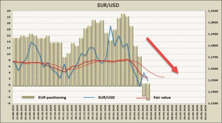 Вероятнее всего, это означает, что нужны подтверждения того, что энергетический шок должен усилиться, чтобы быть уверенным в повышении ставок. Нефть сегодня торгуется ниже 110 долл. за бочку, это много, но все еще терпимо. Вопрос в том, что поставки по таким ценам под угрозой, и именно эту угрозу нужно оценить более тщательно. Текущие же показатели экономики все еще приличные, замедление еще никак себя не проявило, и повышению ставок не помешает. Рост ожиданий по ставке нарастает, и при других условиях это послужило бы хорошей возможностью для укрепления евро. Но не в этот раз, энергетический голод спровоцирует резкое замедление производства при ухудшении рентабельности, что, в свою очередь, приведет в движение инвестиционный капитал Европы с четким направлением на выход. И это движение окажет на курс евро гораздо более сильное влияние. Спекулятивное позиционирование по евро ухудшилось за отчетную неделю еще на 1.7 млрд, тенденция сохраняется, расчетная цена уверенно обосновалась ниже долгосрочной средней.