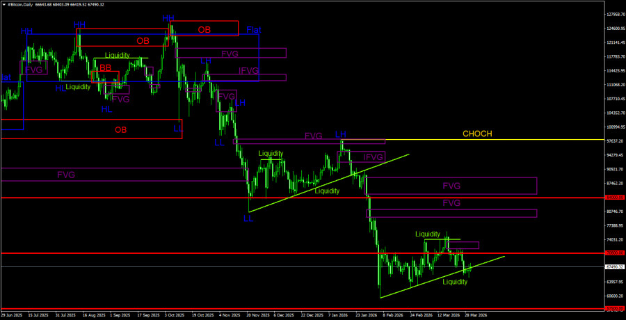 Торговые рекомендации по Биткоину(Bitcoin) на 29 марта по системе ICT
