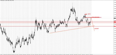 тестирует зону шортового слома, от которой может пойти продолжение шортовой тенденции.Предлагаю рассмотреть шортовые позиции с отката на шортовый слом по схеме, представленной на скрине выше.