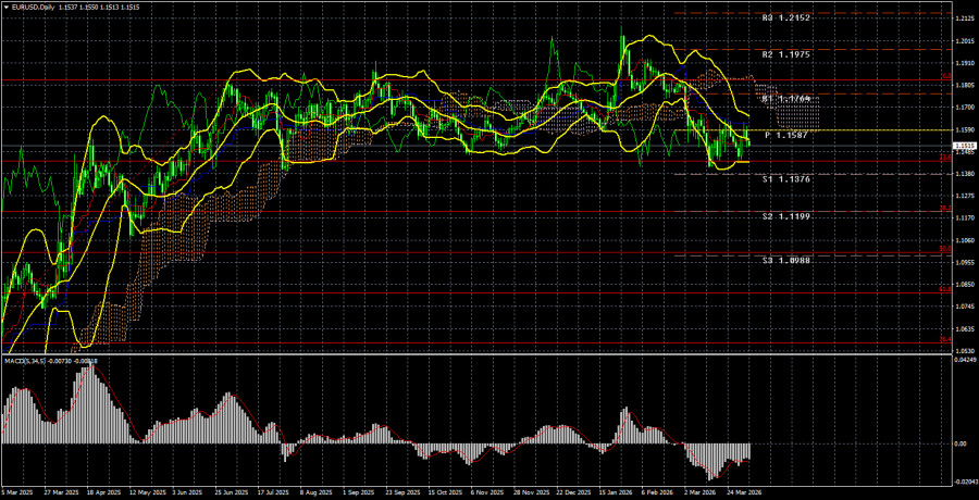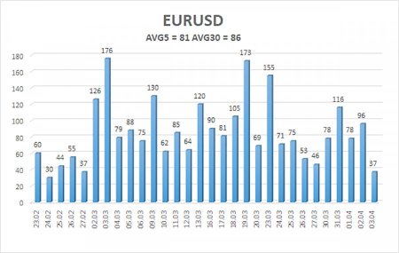 Валютная пара EUR/USD в течение пятницы продемонстрировала волатильность, равную 37 пунктам. Именно такой волатильности ожидали трейдеры в день публикации NonFarm Payrolls и уровня безработицы в США. И ладно, если бы отчеты показали абсолютно пресные, предсказуемые значения. Но нет. Данные начали удивлять еще с февраля-месяца. Начать следует с того, что значение Нонфармов за февраль было пересмотрено с -92 тысяч до -133 тысяч. Статистика рынка труда при Дональде Трампе продолжает поражать воображение. Данные за март оказались гораздо более позитивными. Во-первых, выяснилось, что уровень безработицы, вопреки прогнозам, снизился до 4,3%. Во-вторых, количество новых созданных рабочих мест вне сельскохозяйственного сектора составило 178 тысяч при прогнозах 50-60 тысяч. Казалось бы, сам Господь указал рынку продолжать покупки доллара. Но трейдеры не то, чтобы не стали покупать американскую валюту, они в принципе отказались торговать. Движений не было никаких в течение всего дня. Предвосхищая выводы некоторых трейдеров, скажем, что мартовское значение NonFarm Payrolls выглядит блестяще сейчас. В начале мая оно может быть легко пересмотрено в низшую сторону, что случалось неоднократно в последний год. Стоит лишь напомнить, что по итогам всего 2025 года было создано порядка 200 тысяч новых рабочих мест, хотя изначально подсчеты говорили о 600 тысячах. Отчет NonFarm Payrolls пересматривается каждый месяц, и даже пятничный отчет – не исключение. Февральское значение было пересмотрено на 40 тысяч в сторону снижения. Таким образом, 178 тысяч сейчас могут превратиться в 120 тысяч через месяц. А один раз в год и палка стреляет. На наш взгляд, самое главное – это тенденция. Открываем графики показателей за последние 5 лет видим, что уровень безработицы растет уже 3 года. Да, он растет слабо и небыстро, но все же растет. А миграционная, торговая и экономическая политика Дональда Трампа явно не способствует росту рабочих мест. Что касается показателя NonFarm Payrolls, то 2025 год оказался для него самым провальным за последние десятилетия. В прошлом году пять месяцев из двенадцати оказались с отрицательным значением. Напомним, что NonFarm Payrolls – как индекс деловой активности. Хорошим считается значение выше определенного уровня. Для индексов деловой активности это 50. Для NonFarm Payrolls – это условно 150 000. Поэтому даже 120 тысяч новых рабочих, созданных за 1 месяц – это не слишком позитивное значение. Так почему же рынок проигнорировал столь важные отчеты, столь резонансные значения, да еще и которые поддерживали американский доллар? Потому что. Потому что рынок игнорирует всю макроэкономическую статистику в последние полтора-два месяца. Трейдеры считают, что очередное противоречивое выступление Трампа – это повод для активной торговли. А макроэкономика сейчас никого не интересует. Таким образом, вывод остается прежним – только геополитика и Дональд Трамп правят сейчас балом. По евровалюте на дневном ТФ восходящий тренд все еще сохраняется, но никто не знает, сколько еще будет длиться конфликт на Ближнем Востоке и чем он в итоге закончится. Средняя волатильность валютной пары EUR/USD за последние 5 торговых дней по состоянию на 4 апреля составляет 81 пункт и характеризуется, как «средняя». Мы ожидаем движение пары между уровнями 1,1434 и 1,1596 в понедельник. Старший канал линейной регрессии развернулся вниз, чт