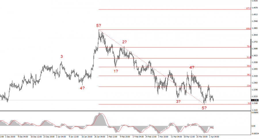 Исходя из проведенного анализа EUR/USD, я делаю вывод, что инструмент остается в рамках повышательного участка тренда(нижняя картинка), а в краткосрочном плане завершил построение понижательного набора волн. Так как пятиволновая импульсная структура завершена, в ближайшую неделю мои читатели могут рассчитывать на повышение котировок с целями, расположенными около отметок 1,1666 и 1,1745, что приравнивается к 38,2% и 50,0% по Фибоначчи. Дальнейшие движения инструмента полностью зависят от событий на Ближнем Востоке.Волновая картина по GBP/USD: