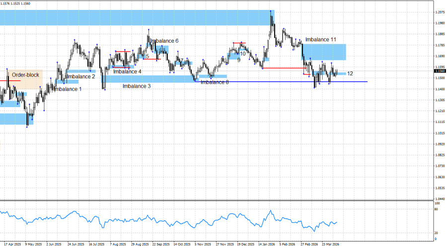 Весь рост американской валюты в последние 4-5 недель был обеспечен геополитикой. Сейчас же трейдеры предпочитают тихо ждать развития событий, не понимая, что им делать. Трамп то хочет разблокировать Ормуз, то перекладывает ответственность на другие страны. То говорит об успешных переговорах с Ираном, то обещает уничтожить его. Отражение этих событий мы видим на графике. Я неоднократно говорил, что не верю в завершение «бычьего» тренда, несмотря на пробой важных, трендообразующих лоу. Движение последних 2 месяцев вполне может стать «медвежьим» трендом, если геополитика и дальше будет всячески поддерживать доллар. Однако в данное время я все еще сомневаюсь в способности медведей атаковать непрерывно в течение длительного времени. Дальнейший рост доллара США возможен в том случае, если геополитика и дальше будет оказывать серьезную поддержку медведям. А, как я уже говорил, для этого требуется, чтобы ситуация на Ближнем Востоке не просто оставалась сложной, а чтобы она становилась еще хуже. Графическая картина начинает преображаться и становится очень интересной. Во-первых, цена может в ближайшее время получить на него реакцию на имбаланс 11. Это будет уже вторая реакция, которая может оказаться слабее, а может – вообще отсутствовать. Однако, напомню еще раз, что «бычий» тренд сохраняется, а около имбаланса 11 может быть образован только сигнал на продажу. Во-вторых, цена может получить реакцию на имбаланс 12, образовав, таким образом, «бычий» сигнал на «бычьем» тренде. Еще один важный момент – потенциальные съемы ликвидности с трех последних «бычьих» свингов, которые могут совпасть с отработкой имбаланса 11. Таким образом, сейчас еще рано говорить о переходе быков в полноценное наступление, однако вероятность этого присутствует. Ключевое условие – перемирие между Вашингтоном и Тегераном было достигнуто. Информационный фон во вторник был достаточно слабым, а после пятницы и понедельника никто и не ожидал сильных движений после очередного американского отчета. Трейдеры продолжают следить только за геополитикой, и в данное время они ждут очередного решения Дональда Трампа. На 7 апреля Трамп установил новый дедлайн в переговорах с Тегераном, после которого будет нанесен сокрушительный удар по Ирану. Либо сегодня Трамп продлит сроки переговоров, либо нанесет удар. Причин у быков атаковать остается огромное количество, и даже с началом войны на Ближнем Востоке их меньше не стало. Структурно и глобально политика Трампа, которая привела к серьезному падению доллара в прошлом году, не поменялась. В ближайшее время американская валюта может демонстрировать рост на фоне бегства инвесторов от риска, но этот фактор не сможет оказывать ей поддержку постоянно и требует постоянной эскалации конфликта на Ближнем Востоке. А других факторов поддержки у американской валюты нет. В «медвежий» тренд я по-прежнему не верю. Доллар получил временную поддержку рынка, но за счет чего медведям атаковать дальше? Календарь новостей для США и Евросоюза: Евросоюз – Изменение объемов розничной торговли (09-00 UTC). США – Минутки FOMC (18-00 UTC). 8 апреля календарь экономических событий содержит в себе две достаточно второстепенные записи. Влияние информационного фона на настроение рынка в среду будет слабым. Прогноз по EUR/USD и советы трейдерам: На мой взгляд, пара 