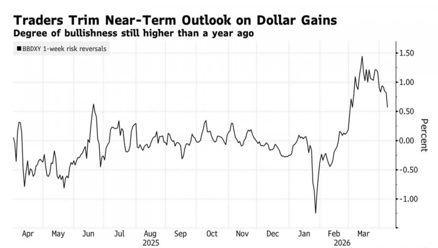 Причин тесной связи несколько. Соединенные Штаты являются крупнейшим производителем нефти и, как правило, их валюта извлекает выгоду из роста Brent и WTI. Проблемы с поставками черного золота взвинтили спрос на американские сорта. Кроме того, черное золото котируется в долларах США. Добавьте к этому статус гринбэка как актива-убежища и большую устойчивость экономики к кризису в Персидском заливе, чем европейской или азиатской. Очевидно, что лишившись этих козырей, индекс USD резко ушел вниз. Не помогли взаимные упреки США и Ирана в нарушении режима прекращения огня противником. А также нападение Израиля на Хезболлу в Ливане, чему противился Иран. Переговоры должны начаться в конце недели, а до этого обстановка в регионе остается напряженной. Дональд Трамп заявил, что не собирается выводить из него американские войска, пока не будет достигнута сделка. Динамика рисков разворота по доллару США