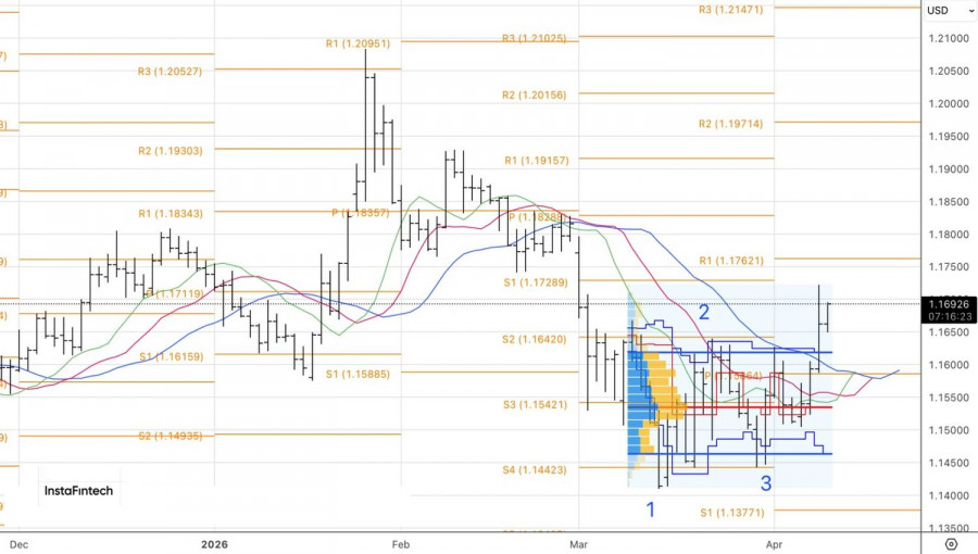 С учетом имеющейся корреляции, это означает, что и для ралли EUR/USD к имевшим место в конце января отметкам выше 1,2 придется дожидаться дольше, чем хотелось бы покупателям. Даже соглашение между США и Ираном не избавит экономику еврозоны от связанных с высокой инфляцией и ценами на энергоносители бед. В таких условиях основную валютную пару скорее нужно продавать на росте, чем покупать на снижении. Технически на дневном графике EUR/USD продолжается реализация разворотного паттерна 1-2-3. Пока котировки находятся выше верхней границы диапазона справедливой стоимости 1,1465-1,162, балом правят «быки». С другой стороны, неспособность покупателей взять штурмом пивот-уровни 1,173 и 1,176 станет признаком их слабости и поводом для формирования коротких позиций по евро против американского доллара.Материал предоставлен компанией InstaForex - www.instaforex.com