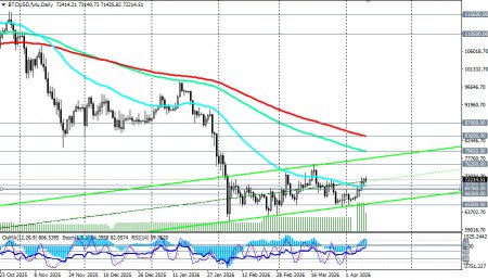 Наиболее вероятный сценарий на текущий момент - движение в диапазоне 68000.00–74000.00. Переговоры продолжаются, но без немедленных результатов. Рынок остаётся чувствительным к геополитическим заголовкам. Цели: консолидация в рамках указанного диапазона с повышенной волатильностью. Уровни поддержки: 71400.00, 71000.00, 70700.00, 70000.00, 69760.00, 69580.00, 69000.00, 68300.00, 68000.00, 66000.00, 65500.00, 65000.00, 60000.00 Уровни сопротивления: 73000.00, 73140.00, 75000.00, 76000.00, 76200.00, 77000.00, 79000.00, 79650.00, 80000.00, 82000.00, 83000.00, 83600.00, 84000.00, 85000.00, 86000.00, 87000.00, 88000.00, 88500.00, 86200.00, 90000.00, 94300.00, 96400.00, 100000.00, 100350.00, 104000.00, 110500.00, 115600.00, 120350.00, 124000.00, 126000.00 Торговые сценарии