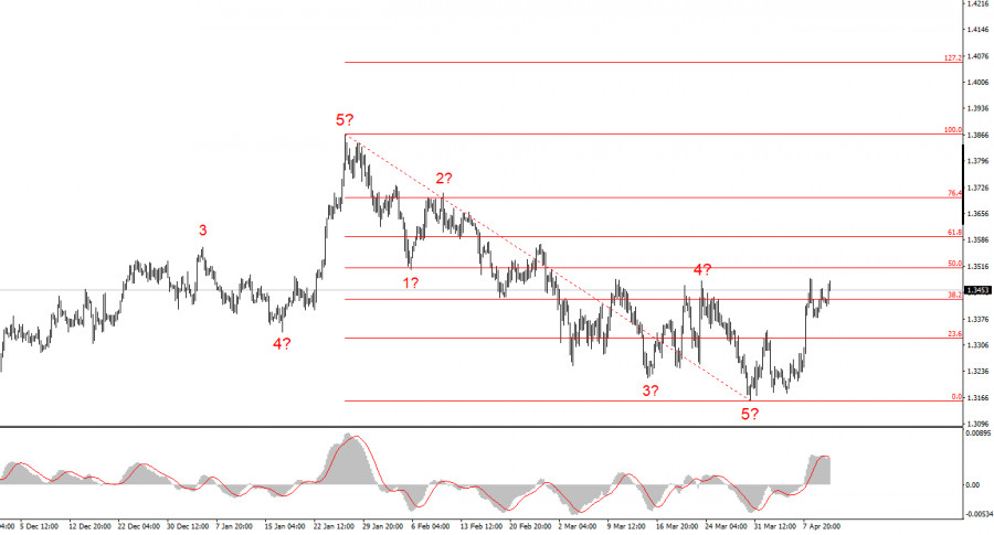 Исходя из проведенного анализа EUR/USD, я делаю вывод, что инструмент остается в рамках повышательного участка тренда(нижняя картинка), а в краткосрочном плане – в рамках коррекционной структуры. Коррекционный набор волн выглядит вполне завершенно и может получить более сложный, протяженный вид только в одном случае – если между Ираном, США, Израилем и ВСЕМИ остальными странами на Ближнем Востоке установится стойкое перемирие. В противном случае, я считаю, что с текущих позиций может начаться построение нового понижательного набора волн.Волновая картина по GBP/USD: