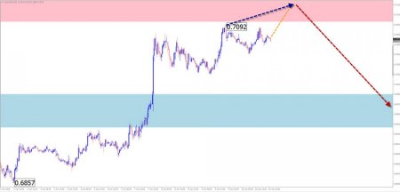 GBP/USD Анализ: В краткосрочном масштабе ценового графика мажора английского фунта стерлингов с января текущего года формируется медвежий тренд. В структуре волны весь прошедший месяц развивалась растянутая коррекционная плоскость (В). Котировки достигли верхней границы потенциально-разворотной зоны дневного ТФ. Ее структура выглядит завершенной, но сигналов скорого разворота не наблюдается. Прогноз: В предстоящие пару дней ожидается флетовый настрой цены мажора фунта стерлингов. Возможно давление на верхнюю границу сопротивления. Затем можно рассчитывать на разворот и начало нисходящего направления. Нижним рубежом ожидаемого недельного хода пары выступает расчётная поддержка. Зоны потенциального разворота Сопротивление: - 1.3460/1.3510 Поддержка: - 1.3280/1.3230 Рекомендации: Покупки: не имеют потенциала. Продажи: станут возможными после появления в районе сопротивления соответствующих подтверждённых сигналов разворота. AUD/USD Анализ: Основное направление ценовых колебаний основной пары австралийского доллара с весны прошлого года задавал алгоритм восходящей волны. С конца января навстречу основному курсу развивается коррекционная волна. Её структура на момент анализа не выглядит завершённой. Цена приближается к мощной зоне потенциального разворота крупного ТФ. Прогноз: В предстоящую неделю ожидается постепенное перемещение котировок «аусси» от зоны расчётного сопротивления в район поддержки. В первые дни возможен кратковременное давление на верхнюю границу зоны сопротивления. Смена курса и ход цены вниз более вероятен к концу недели. Зоны потенциального разворота Сопротивление: - 0.7100/0.7150 Поддержка: - 0.6990/0.6940 Рекомендации: Покупки: высокорискованны, имеют малый потенциал. Продажи: могут использоваться в торговых сделках после появления в районе сопротивления подтверждённых сигналов разворота. USD/CHF Анализ: В краткосрочной перспективе актуальная волна швейцарского франка с апреля прошлого года направлена вверх. Волна корректирует более крупную медвежью конструкцию недельного ТФ. Структура волны находится в заключительной фазе. В районе расчётного сопротивления проходит нижняя граница мощной потенциально-разворотной зоны крупного масштаба. Прогноз: В предстоящий недельный период ожидается завершение нисходящего курса ценового движения франка и начало роста котировок инструмента. В ближайшие пару дней не исключён кратковременный ценовой откат вниз к зоне поддержки. Прорыв её нижней границы маловероятен. Наибольшая активность вероятна к концу недели. Зоны потенциального разворота Сопротивление: - 0.8080/0.8130 Поддержка: - 0.7860/0.7810 Рекомендации: Продажи: несут высокую степень риска, могут быть убыточными. Покупки: станут актуальными для проведения торговых сделок после появления в районе зоны поддержки подтверждённых сигналов разворота. EUR/JPY Анализ: В долгосрочной перспективе графика кросса евро/японская йена доминирует восходящий тренд. Незавершённый участок по основному курсу ведет отчет с 12 февраля. Цена приближается к нижней границе зоны потенциального разворота крупного масштаба. В районе расчётного сопротивления находится скопление нескольких разворотных уровней разных ТФ. Прогноз: В ближайшие день-два можно рассчитывать на флетовый настрой ценовых колебаний. Вероятен боковик, либо слабонисходящий век
